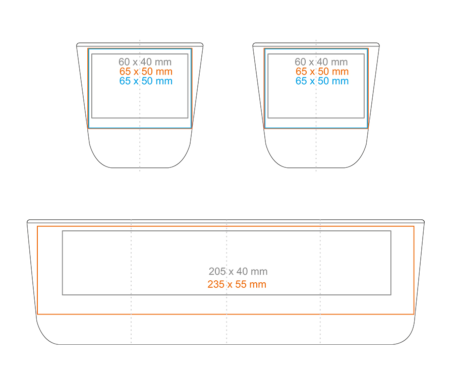 * W przypadku projektów wybiegających poza standardową powierzchnię nadruku prosimy o kontakt z działem handlowym.